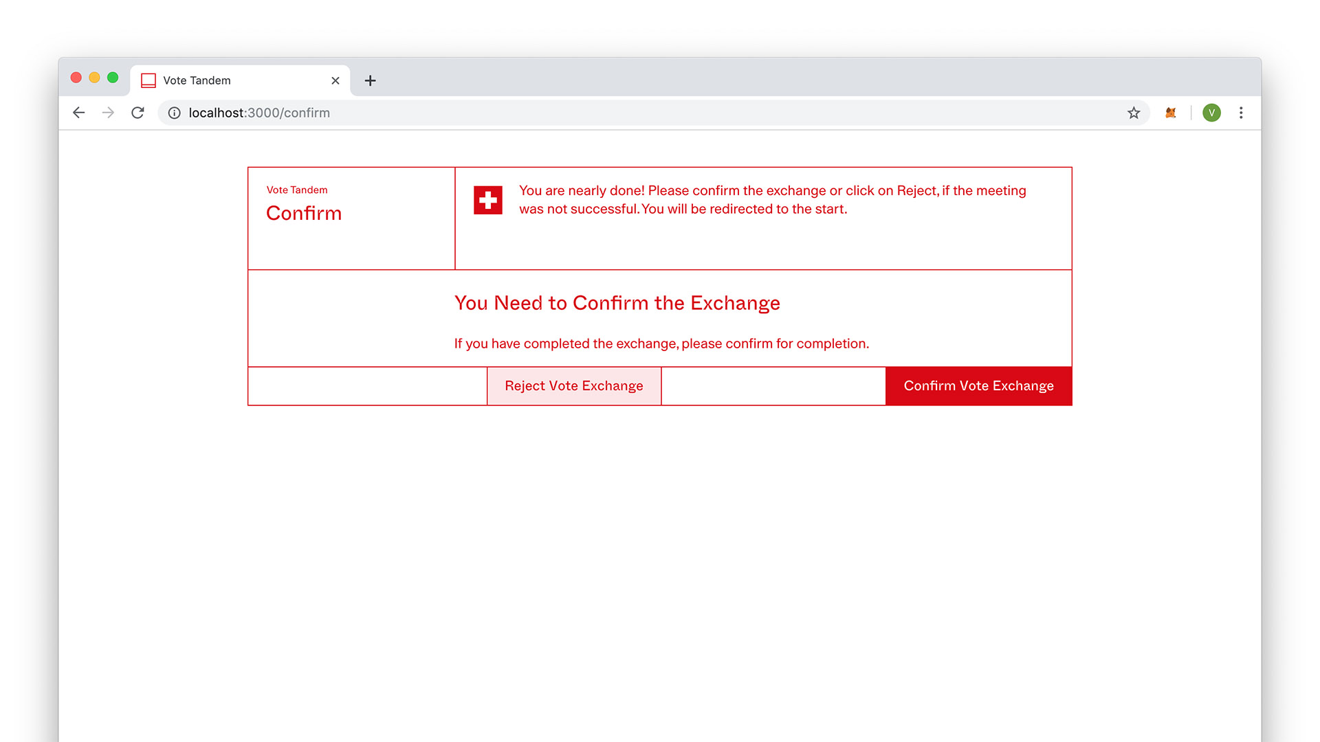 votetandem.org logoIn Switzerland many inhabitants are excluded from votings, most of whom are foreigners making up 25 % of the population. Votetandem.org enables a direct possibility to vote by meeting up with Swiss people who supply their vote for exchange. The platform is based on blockchain technology for a secure and independent operation.